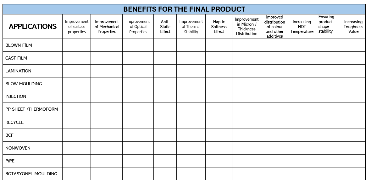 As Koren Kimya, we have designed our product portfolio with additive technologies that make application-oriented production efficient and add value to the final product. In your applications, instead of being a solution for the usual problems and the use of high-priced and high quality raw materials, we produce solutions to evolve to the use of low-priced raw materials with the additive technology we will recommend. We provide service support in R&D-Warehouse logic to produce better quality products for your customers by producing tailor-made products specific to your resin and your business.